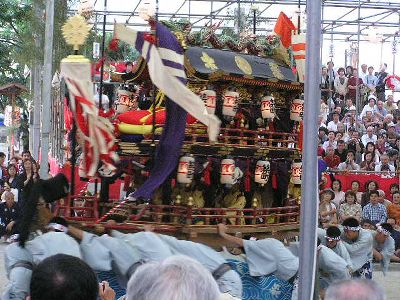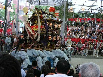 築町の大技は回転しながら前進、本部席の前でピタッと止まる「大鳴門」。