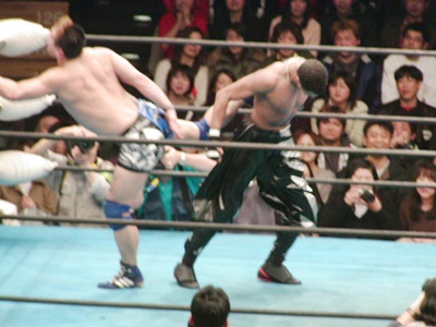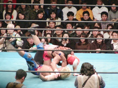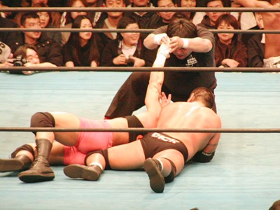 TAKAが人生にスーパーK連打、ジョディにもスーパーK(左写真)、カウント2。20分経過。