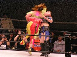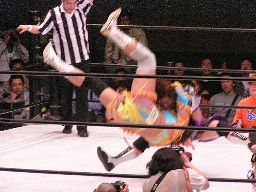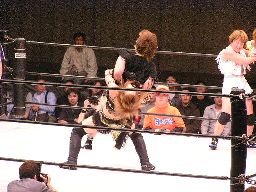 日向みちのくドライバー(右写真)、これは伊藤がカット。日向は田村にタッチ。