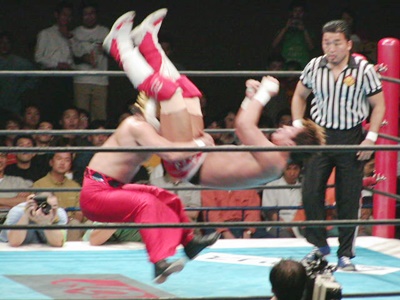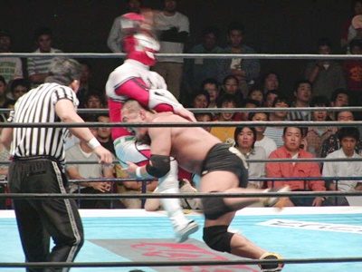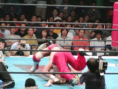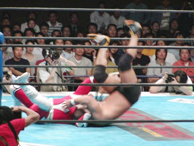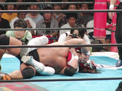 杉浦オリンピック予選スラム2連発(左写真)、カウント3。