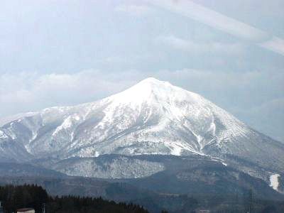 そんなに遺構が残ってるわけでもないのであっさり見物終了、また駅まで歩いて14時54分の特急(郡山まで止まらず)で郡山に。帰りの車中から磐梯山(たぶん)を撮ってみる(右写真)。動く車内から撮るのもなかなか難しい。