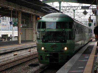 14時37分発の「ゆふいんの森」5号で天ヶ瀬に。さすが「観光列車」と銘打つだけあってゆふいんの森号は快適。しっかしベタな九州旅行だな。かしわめしといいゆふいんの森といい。
