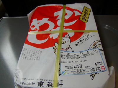 1時間ほどで西小倉駅に戻り福岡方面行きの快速に乗る。しかし今度は途中の折尾で下車。東筑軒の駅弁「かしわめし」を買うため。これも随分久しぶり。
