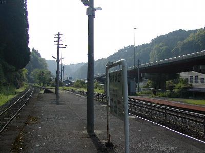 「ゆふいんの森」は鹿児島本線から久大本線に入り、のどかな沿線風景を抜けて16時2分に天ヶ瀬駅到着。いかにもローカル駅な風景。