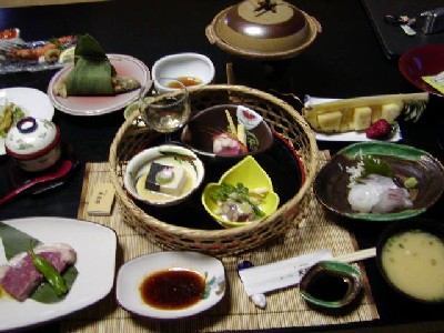 夕飯。これだけ出されても全部は食えない。風呂は夜だけで3回。風呂広くていいわ、ここ。満足。