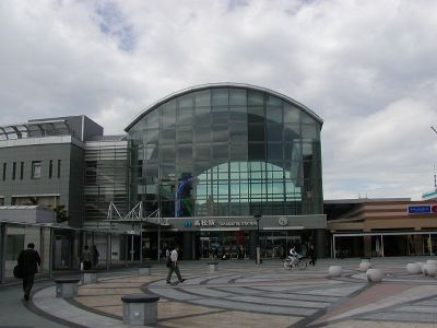 JR高松駅は城から徒歩3分。この辺り再開発終わったばかり(あるいはまだ途中)、という感じ。JRの駅舎も新しげ(右写真)。みどりの窓口で「四国フリーきっぷ」15,700円購入、しまんと7号で丸亀に向かう。このしまんと7号、特急なのだが2両編成(途中の宇多津で岡山からの6両とつなぐらしいが)、車両もかなりショボい。禁煙車は半分が指定席、半分が自由席。うーむ。空いてたからいいが。
