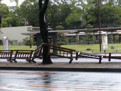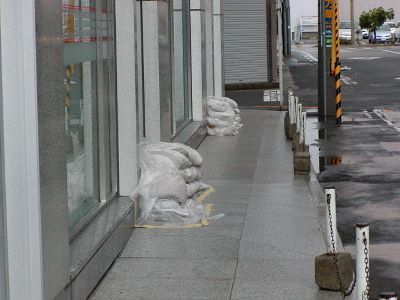 5時起き。ホテルの部屋から外を見てもさほど天気が悪いようには見えない。なので予定通り6時前に高松駅に向かう。しかし駅周辺のビルには浸水よけの土嚢が。気づかなかったが深夜は凄かったのか?