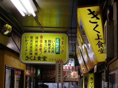 朝食を食べに「きくよ食堂」に。「朝市内の食堂は観光客向けで高いばかり」と評判悪いらしいが自分も観光客だしなあ。まあこんなとこで十分。
