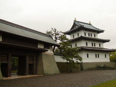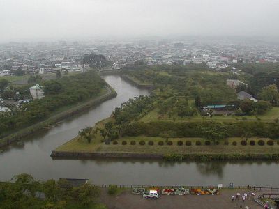 1時間半後、「松城」で下車して松前城に。着いた時には雨はやんでいたが、まわってるとまた降り出した。他の写真はこちら。さっきのアメリカ人とは城の中でバラバラに。まあ双方一人旅を望んでいたということだ。