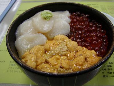 結果的に時間に多少余裕ができたので函館朝市内の「きくよ食堂」で朝飯。私は巴丼、宮田さんは三色丼。うまい。
