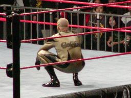 そしてゴールダスト入場(左写真)。ちょっと微妙な色合いの試合が続いたのでこういう「わかりやすい」人はよい。