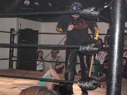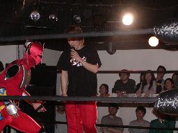 MIKAMI「コントは終わったか?Blue Fieldで見せてもまだ信じないようだから、面白い提案してやるよ。先生がポイズンと別人だと言うのなら、お前らポイズン・猪熊と試合できるよな?」(右写真)。