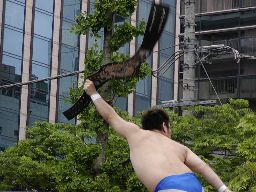 ディーノは首投げから「死ね〜」。鳥羽をうつぶせにするとその上で回転、さらにトランクスに手を入れる(右写真)。高梨がディーノの背中に触って無理矢理タッチ。