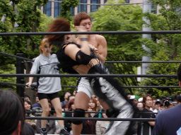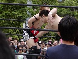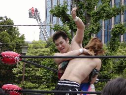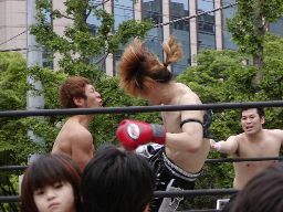野外の試合だとMIKAMIの飛び技が映える。