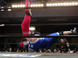 諸橋とHERO!が戻る。諸橋垂直落下式ブレーンバスター(右写真)、カウント2。