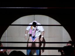 しかしついにディーノの男色クローがKUDOの股間を捕らえる(右写真)。ディーノ「20cm!」KUDO思わずディーノにビンタ。