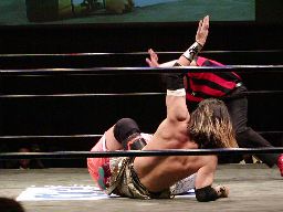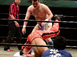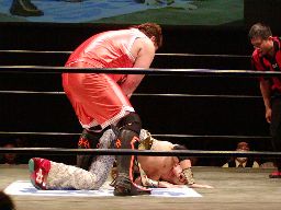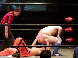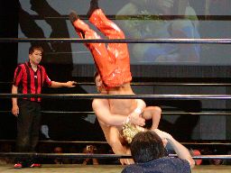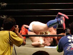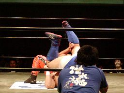 高梨全力で押さえ込む(右写真)、しかしカウント2でディーノ切り返す(高梨返し返し?)、高梨2で返す。