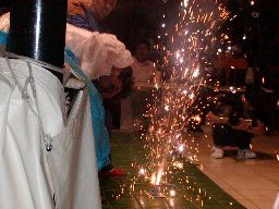 一宮は観客にクラッカーを配り、ゴージャスを連れて行って一斉射撃を浴びせさせる(右写真)。
