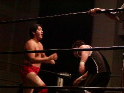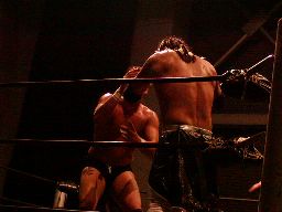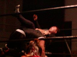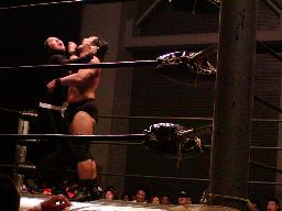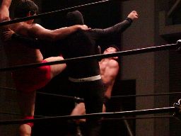 橋本ポイズンをボディスラムで投げるとコーナーからトペ・アトミコ(右写真)、カウント2。高木にタッチ「。