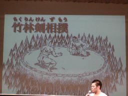 まずは羅倶美偉(ラグビー)。撮れなかった。2つ目は竹林剣相撲(右写真)。