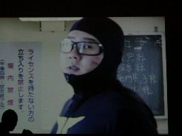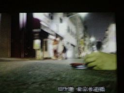 バイクで帰ろうとする猪熊。猫を避けようとして車と・・・。飛ぶヘルメット、横たわる手。画面には「ロケ地・東京水道橋」(左写真)。カラオケビデオかよ!