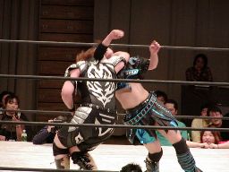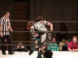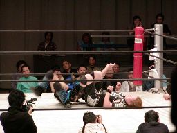 田村外道クラッチ(右写真)、カウント2。