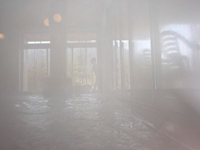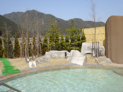 露天風呂。源泉温度は27℃らしいので加熱循環・塩素たっぷりでたいした温泉でもないのだろうが、晴れた日の露天風呂はそれだけで気持ちいい。寄り道してよかった。