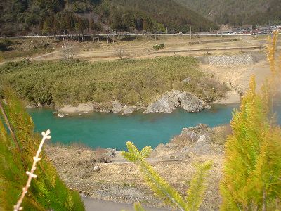 「ジャンプコンテスト」が行われるらしい吉田川。観光開発のためいろいろやってんだねえ。