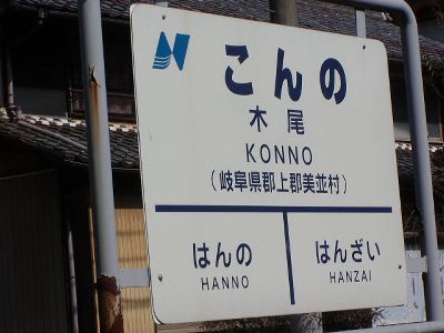 長良川鉄道の途中の駅。これで「こんの」とは読めんなあ。ちなみに前の駅「はんの」は「母野」、次の駅「はんざい」は「半在」と書く。