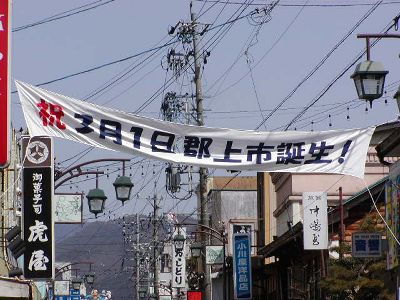 12時36分郡上八幡駅到着。駅から城までは2kmほどあるらしい。街並みを見物しながらゆたゆた歩く。3/1に合併したらしい。