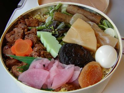 昼飯。駅弁「名古屋コーチンわっぱ飯」。