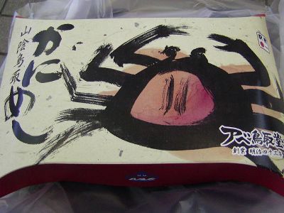 駅前の店はどこも開いてなかったが、鳥取駅構内ではすでに駅弁が売ってた。らっきー。いくつか「かに」関係の駅弁があったが、迷った末「かにめし」購入。