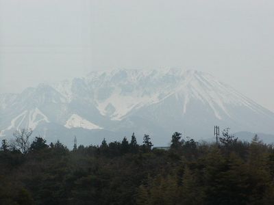山陰線の車窓から見える大山。
