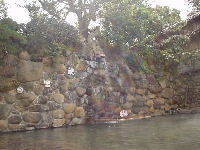 72℃の源泉が龍の口から注がれる(こうやって注ぐことで温度が下がるらしい)。