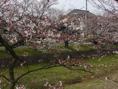 帰りは歩いて玉造温泉駅に戻る。玉湯川河畔の桜は三分咲き。