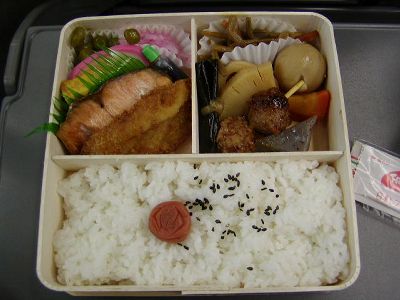 中身。昭和40年代の幕の内を再現したそうだ。3日間限定という言葉に惹かれたが、別に普通の幕の内であった。うまいからいいけど。