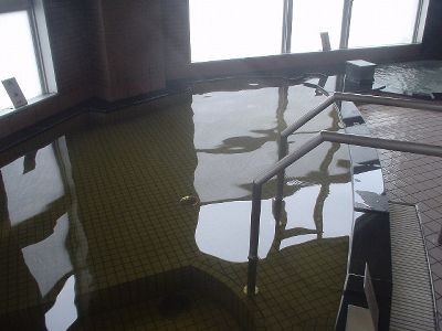 そして問題の露天風呂。結構客はいたが、露天風呂に入る人間はいない。なんか泡の中に虫がいっぱい死んでるのがダメ。温度もぬるすぎ。とても入る気にはならず退散。