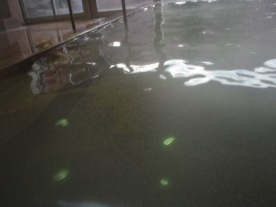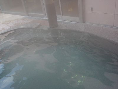クレーター風呂。これには人写ってないけど朝6時からすごい混んでます。泊りもできるから当然か。入浴料600円、貸しタオルセット200円、コインロッカーなし、貴重品ロッカーあり。