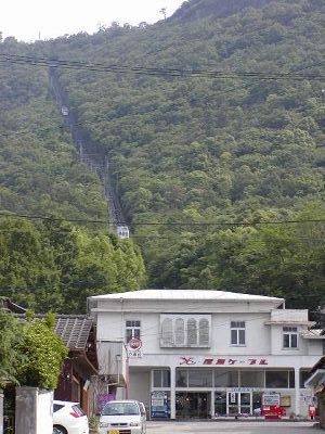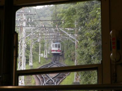 ケーブルカー。辨慶号と義経号が行ったり来たり。朝は8時35分から動いてます(Webで調べたら8時55分と出てたけど一本早いのがあるようだ)。我々は9時20分ので山頂へ向かった(予定より25分の遅れ)。