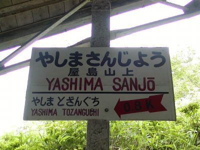 コトデン琴平線で瓦町駅に戻る。事前に調べた時刻表では屋島に向かう志度線は8時32分発のがあるはずだったが、ない。どうも「駅すぱあと」を平日設定で検索したらしい。休日ダイヤは10分後の42分。8時55分に屋島に。ちょうど今出たばっかりの(乗る予定だった)ケーブルカーが見える。どうでしょう班は車で屋島ドライブウェイを登ったのでこれは使わず。