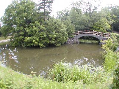 血の池。別に今赤いわけではなく、源平の合戦の際にここで武士が刀を洗ったという伝説があるというだけ。山頂駐車場と屋島寺の間。