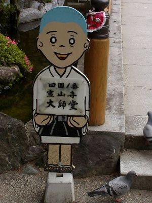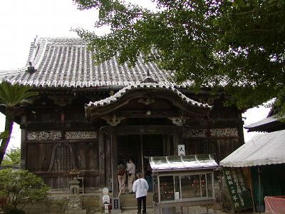 飛行機の徳島到着が遅れて、予定していた10時50分徳島発板東(霊山寺の最寄り駅)方面行きのJR高徳線に乗れず。早くも計画変更。徳島駅前バスターミナルの案内所で聞くと、霊山寺へはバスでも行けるという。さっそく11時10分発のバスに乗る。霊山寺前には11時50分の着。この時点で計画から30分遅れ。まあまだ何とかなる。事前に通販で買っておいた白装束を着込み、いざ霊山寺に。