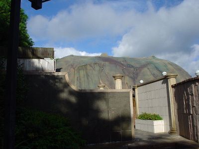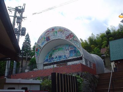 テント風呂外観。「遊輪」のオーナーは画家ということだが、この建物だけ妙にサイケデリックなタッチだった。
