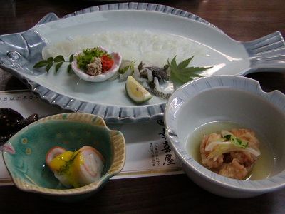 2日目の目的は「地元・日出で城下かれいを食う」。11時18分由布院発の久大本線で大分へ。12時3分大分着。予定では12時45分発のに乗るつもりだったが、隣のホームに2分後の発の日豊本線が来てたので駆け込む。時間つぶししなくてすんだ。暘谷駅には12時35分の着。駅前の割烹「幸喜屋」で城下かれいのコースを注文。これは結構なお値段(8,000円)。