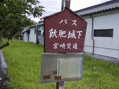 ドリームにちりんグリーン車内部。向かいの席が空いてたので足を伸ばして寝れた。今日の予定はJR日南線で飫肥(おび)に行って飫肥城、その後バスで「どうでしょう」ロケ地からサンメッセ日南と青島を回ってシーガイアに泊る、というもの。しかしドリームにちりん下車寸前に「日南線が踏み切り事故のため運休」というアナウンス。駅に降りても駅員が事態を把握しておらず、「バスなどの代替手段を使ってください」と言うのみ。これで観光立県を標榜する県のターミナル駅員が務まるのかね?東京の駅員はこういう時は優秀だよなあ。バスの営業所に行くと飫肥行きの直行バスはない。で、油津行きのに乗って終点で飫肥行きに乗り換えればいい、と運転手が言うのでそれに従う。日南海岸をひたすら南下すること約2時間、油津に着。しかし時刻表どこ見ても飫肥行きがない。運転手がよく知らずに言ったらしい。全く。飫肥行きのバスが通る通りまで連れて行ってもらい、ようやく飫肥行きのバスに乗る。