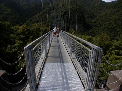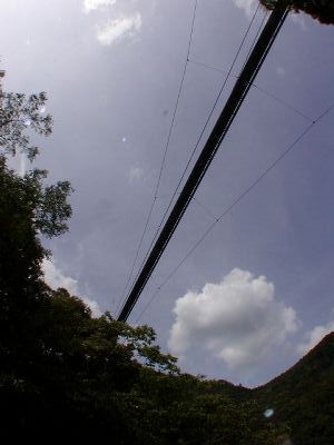 吊橋渡る。「怖いかな?」と思ってたが、実際渡ってるときはほとんど揺れたりしないのでさほど怖くはなし。と思われたが・・・。