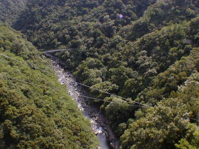 橋の上から140m下を見下ろす。こんなことして自分がどこにいるか意識したらさすがに恐怖感が。