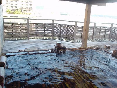 露天?風呂「飲用できません」の札が循環であることを示す。