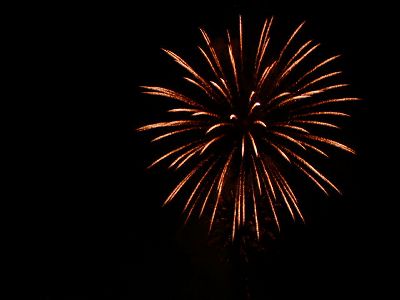 花火が始まった。今日は温泉街のお祭りというか何というか。花火の前にちょっと行ってみたがかなり規模のショボい露店・ステージなどをやっていた。