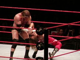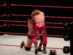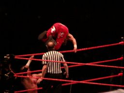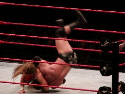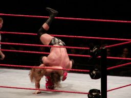 ショーン盛り返す、またヘッドロックからフライングメイヤー。